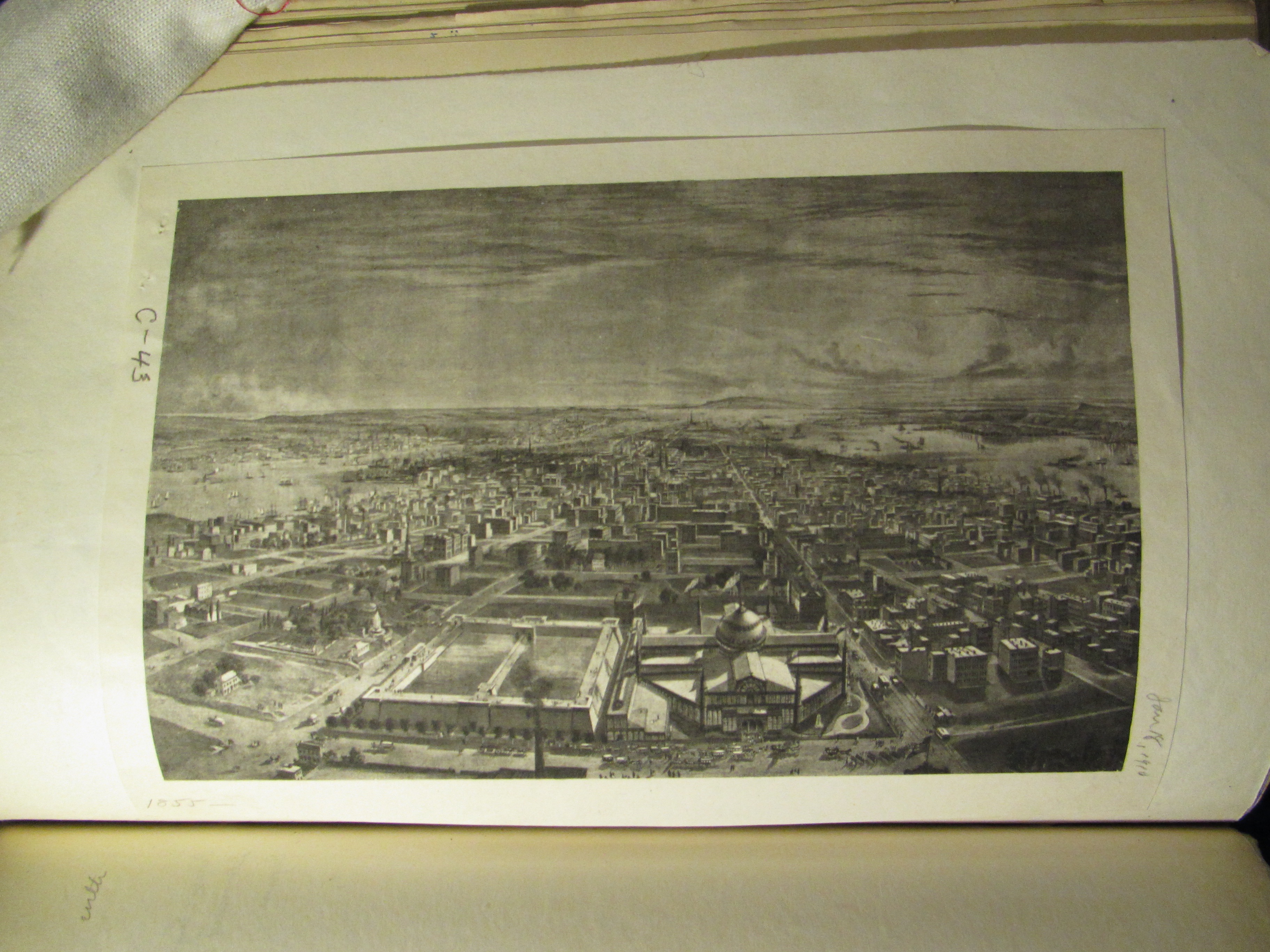 View of New York looking south, showing the Crystal Palace and Croton Reservoir (foreground, center), now Bryant Park and