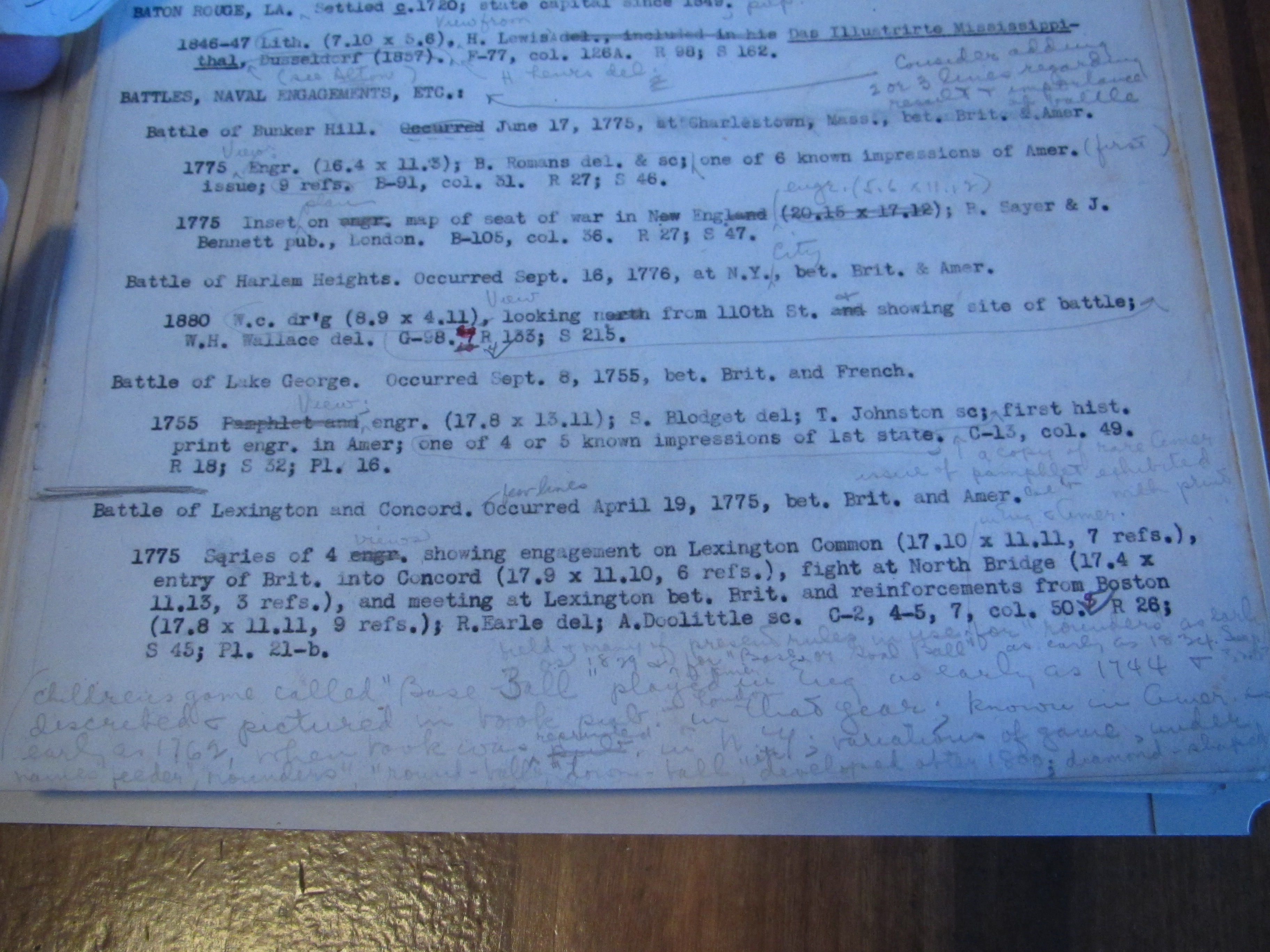 Named in honor of his parents, Anson Phelps and Helen Phelps Stokes, the Phelps Stokes Collection of American and Historical Prints comprised over 800 works,9 and was donated to the New York Public Library in 1930. This document represents an early finding aid, composed by I. N. Phelps Stokes and edited by him and his longtime secretary, Ellen Ahern. Handwriting from both of them is evident in the marginalia throughout; the manuscript was further authenticated by Ahern’s handwritten addendum to the material.